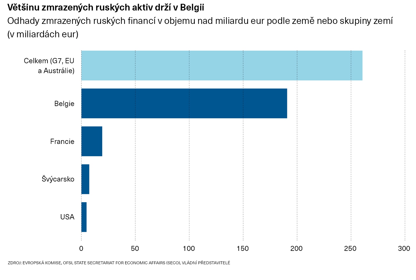 Ačkoli Ukrajina nadále usiluje o plošné zabavení ruských aktiv, představitelé G7 neoficiálně tvrdí, že to již není na pořadu dne. Místo toho hledají alternativní cesty, jak ze zmrazených aktiv získat finanční prostředky. S nápadem, jak na to, přišla letos v únoru Belgie, která drží rezervy ruské centrální banky u Euroclear v objemu přibližně 190 miliard eur (4,7 bilionu korun). Navrhla použít je jako zástavu za dluh ve prospěch Ukrajiny. Skupina G7 by dle plánu zřídila účelovou společnost vydávající dluh jménem Ruska a zástava by byla použita až po vypršení splatnosti dluhu.